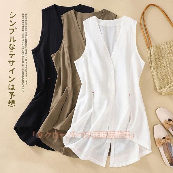 ジレ レディース 夏 綿麻風 薄手 ロング サマー バックスリット ノースリーブ 重ね着風 涼しい ス カーディガン 羽織 レイヤード風