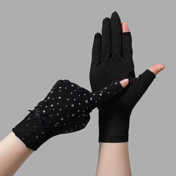 手袋 レディース UVカット 指なし 花柄 レース 手ぶくろ ショート手袋 蒸れない 滑り止め 日焼け対策 アウトドア 可愛い おしゃれ かわいい