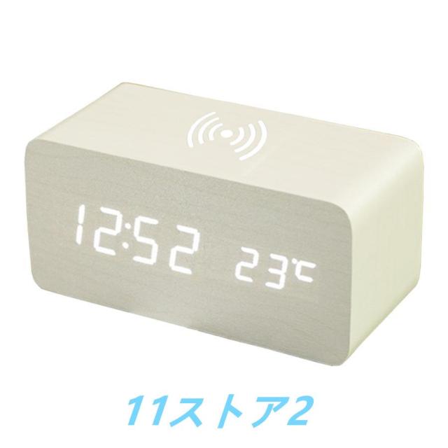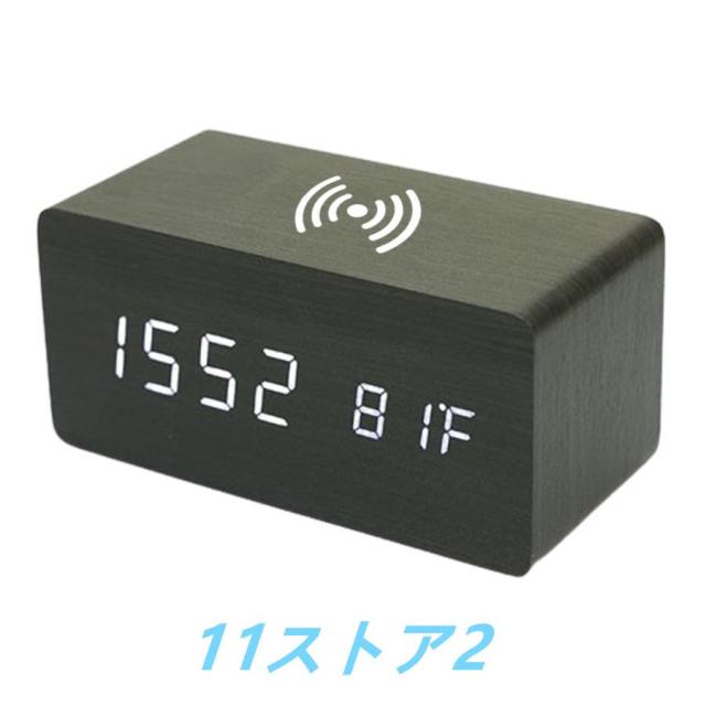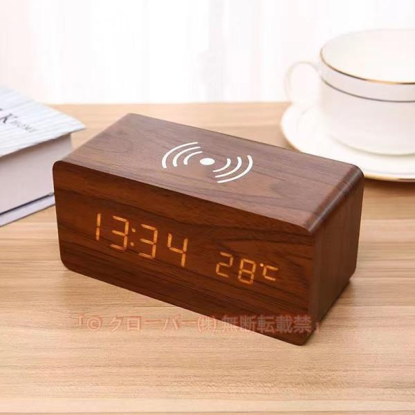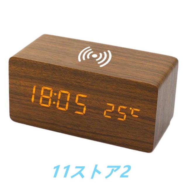 木目調デジタル時計Qi対応で楽々充電機能付き♪