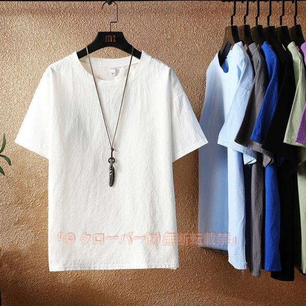 tシャツ メンズ リネン 麻Tシャツ 無地Tシャツ クルーネック 薄手 ティーシャツ 涼しい 通気性 夏 サマー
