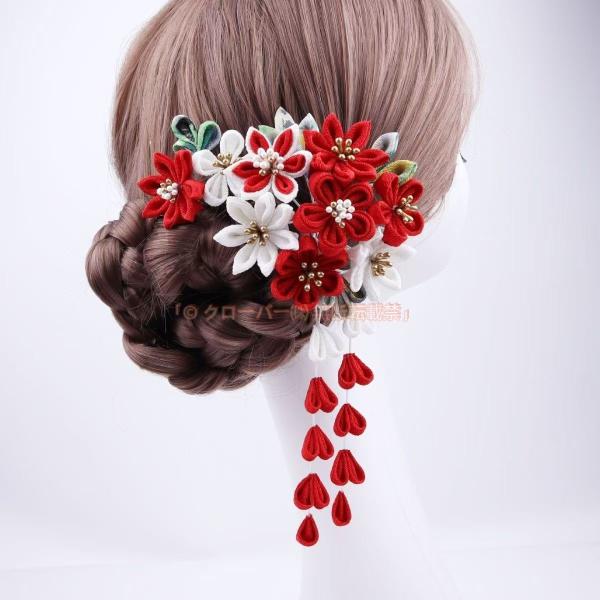 2点セット 髪飾り ヘアアクセサリー 和装小物 つまみ細工 ヘッドドレス 成人式 卒業式 アレンジ イベント レッド パープル ピンク 着物 浴衣 花火大会