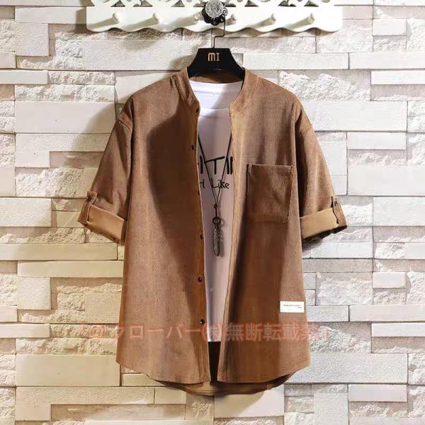 コーデュロイ シャツ メンズ 半袖 開襟シャツ 7分袖シャツ 七分袖 おしゃれ 夏服 無地 トップス