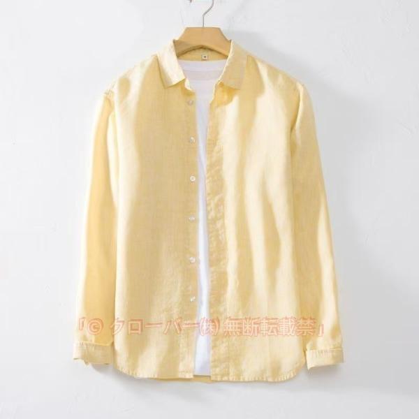 リネンシャツ メンズ 長袖 トップス 折り襟 スタンダードカラー カジュアルシャツ シャツ ゆったり 無地 ベーシック 夏 メンズファッション