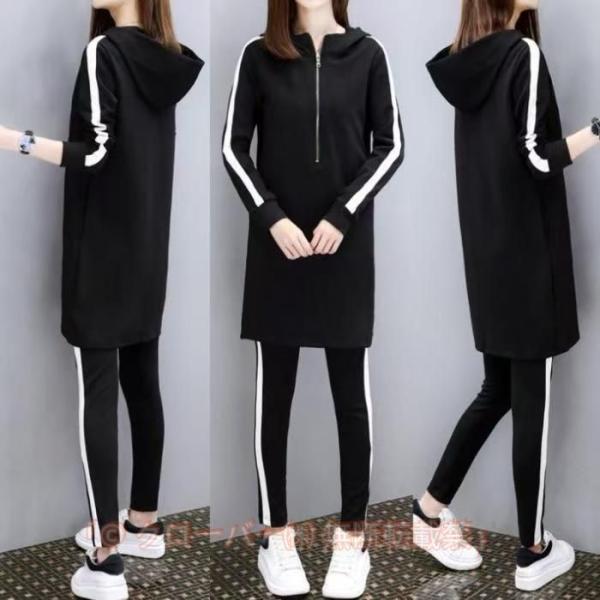 おしゃれジャージレディース上下セットLMサイズ韓国スウェットセットアップロングパーカーパンツスリムスポーツルームウェアスエット部屋着