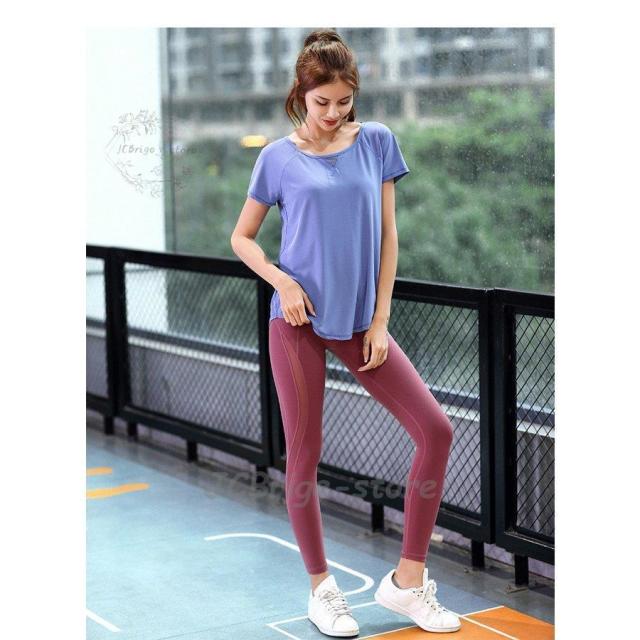 ヨガウェア レディース トップス 半袖 Tシャツ かわいい おしゃれ バックメッシュ ホットヨガ フィットネス スリット 吸汗速乾