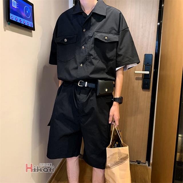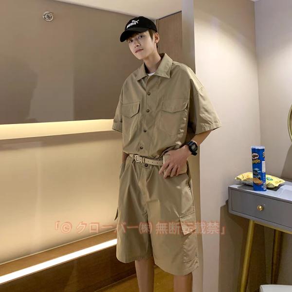 つなぎ おしゃれ メンズ 作業着 作業服 半袖 オールインワン ハーフパンツ カーゴ かっこいい 黒 カーキ 父の日 夏服
