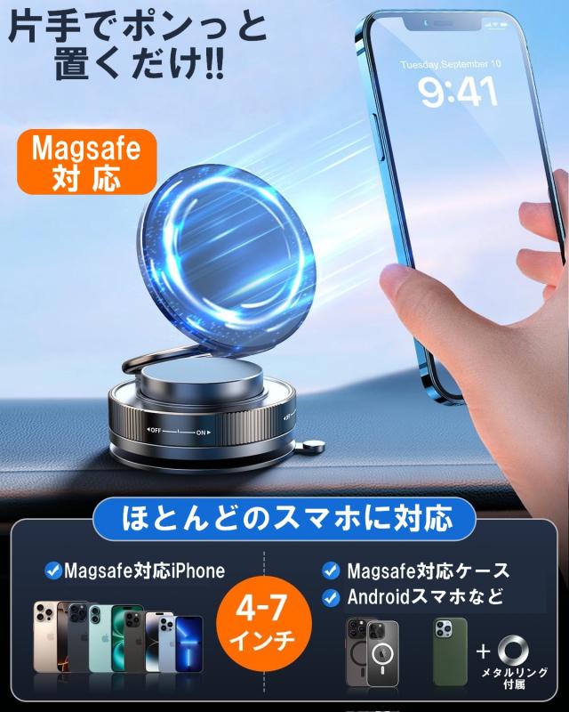 ※MagSafe対応可能な機種やスマホケースはそのままご使用ください。MagSafe対応しない機種やスマホケースご利用する際、付属品のマグネットリンクを貼り付けてからご使用ください。