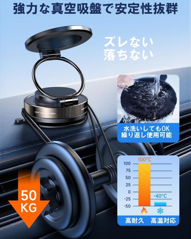 2025年最新型充電不要タイプのマグネットスマホホルダーは、強力な吸着力を持ち、スマートフォンをしっかりと固定します。
