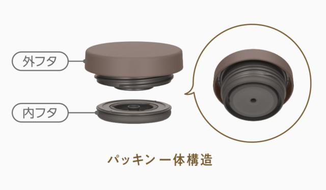 フタはパッキン一体構造なので洗う部品は2つだけ。内フタが取りはずしできて洗いやすいです。