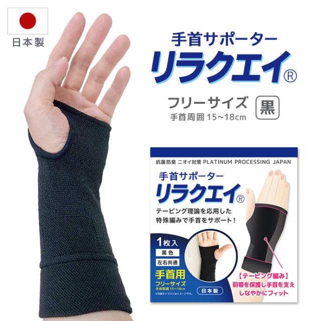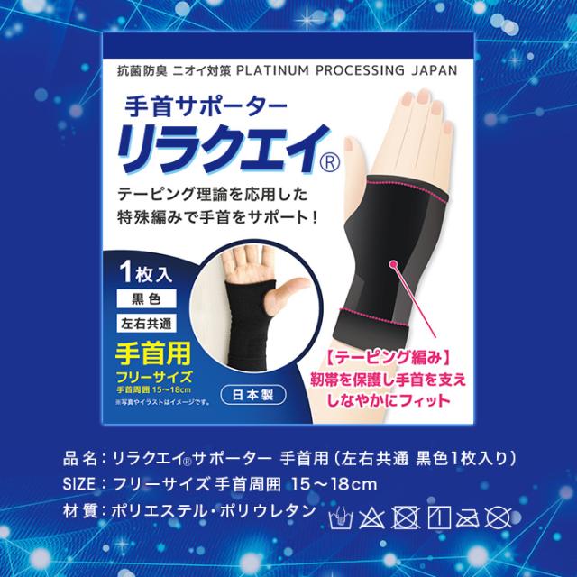 日本製 リラクエイ 手首用サポーター MA-01 手 靭帯 関節 サポート フィット性 通気性 フリーサイズ 洗濯OK 抗菌 防臭 メール便