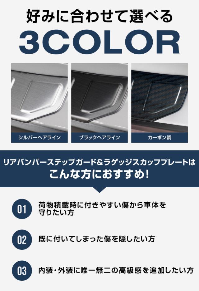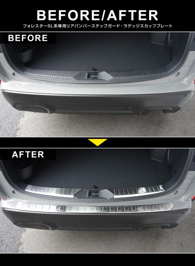 【予約/ブラック:1月20日頃、カーボン調・シルバー:2月10日頃入荷予定】【セット割】スバル 新型フォレスター SL系 専用 ラゲッジスカッフプレート&リアバンパーステップガード セット 3P 選べる3色 外装 カスタム パーツ セット キズ防止 汚れ防止 保護