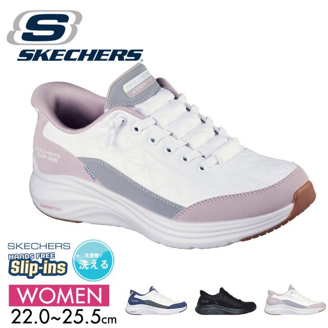 スケッチャーズ ハンズフリー スリップインズ スニーカー レディース ローカット スリッポン 靴 シューズ 女性用 軽量 ブランド 黒 ブラック ネイビー 白 ホワイト Skechers CONTOUR FOAM コージーフィット 150404