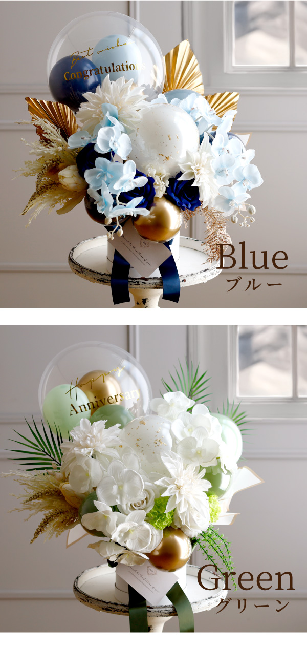 | セット内容 | ・アーティフィシャルフラワー ・透明バルーン ・ラバーバルーン ・リボン ・おもり ・円筒ボックス |