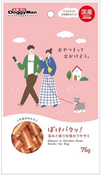 いつものおでかけに必ず持っていきたくなるスナックシリーズ。ワンちゃんが大好きなササミを使用した薄切りのひとくちスナック。ロースト風味がより食欲をそそります。お出かけ時に与えやすく、ワンちゃんもパクっと食べやすい。