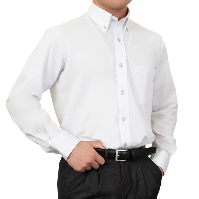 ニット ワイシャツ ※裄詰め対応不可 メンズ 長袖 ノーアイロン ストレッチ ホワイト 標準体【GKW221-700】