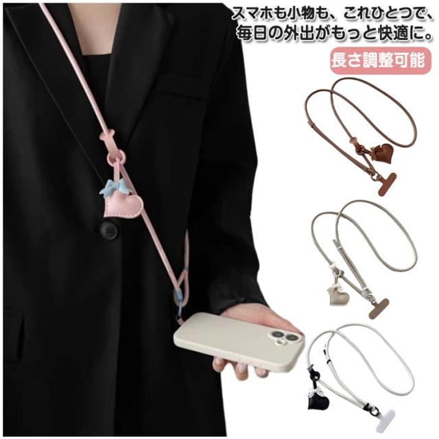| スマホも小物も、これひとつで、毎日の外出がもっと快適に。 【スマホを挟むだけ!手ぶらで快適】 スマホとケースの間にストラップホルダーをサッと挟むだけで、首掛け・肩掛け・斜め掛けができる便利なスマホショルダー。 長さ調整可能だから、自分好みのスタイルに合わせて快適に使えます。 【高級感のあるレザー素材】 丈夫でおしゃれなレザー製ストラップ、シンプルデザインでカジュアルからきれいめまで幅広く対応。さらに、可愛いハートモチーフ飾りでワンランク上のおしゃれに。 【多機能フックでスマホ以外も収納】 スマホだけでなく、レザーフックパーツ設計で、キー・帽子・ウォレット・メガネなども取り付けて、自分らしくカスタマイズを楽しめます。 外出や旅行、ショッピングの際も両手が自由になり、快適に過ごせます。 【長さ調整可能でシーンにフィット】 短めでネックストラップ風に 肩掛けでカジュアルに 斜め掛けで安心&両手フリー シーンやファッションに合わせて自在にアレンジできます。 | |
