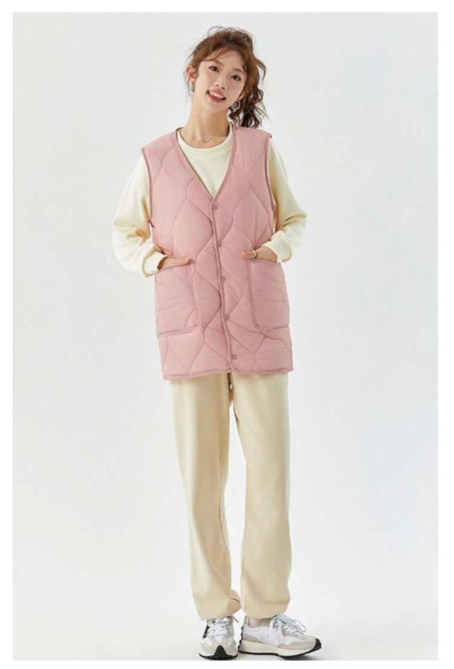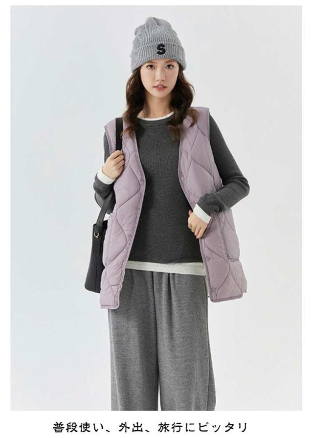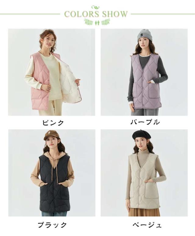 キルティングベスト レディース ダウン風インナーベスト 中綿ベスト ロングジレ Vネック ミドル丈 ダウン風ベスト アウター アウトドア 裏起毛 軽量 大きいサイズ ノースリーブ フロントボタン 防寒着 暖かい 細身 体型カバー 着痩せ ゆったり お洒落 韓国 秋冬 送料無料