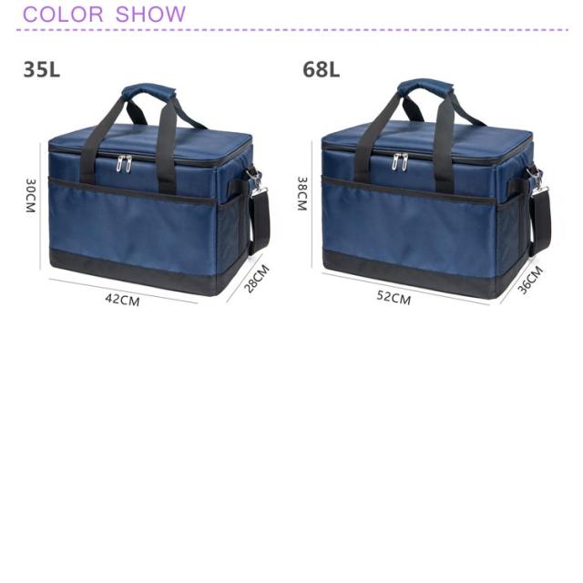 | 35L 68L 3層構造 保冷・保温 折りたたみクーラーボックスバッグ 3層構造の設計は、外側には撥水加工が施された高密度1680Dオックスフォード素材を使用し、内側には簡単に清掃できるPEVA素材を採用しています。 この組み合わせにより、耐久性と衛生面の両方に優れています。 さらに、断熱材としての8mmパールコットンが優れた保温・保冷効果を発揮し、食品や飲み物をいつでも新鮮で適切な温度で楽しむことができます。 また、当社のクーラーバッグはデリバリーバッグとしても使用できるため、その多目的性と品質に自信を持っております。 最大8時間にわたって冷却効果を維持し、忙しい日常生活やアウトドアアクティビティ中でも、いつでも心地よい食事や飲み物を楽しむことができます。 さらに、強力な保冷剤と組み合わせれば、さらなる長時間の保冷が可能です。 イベントやアウトドアでの使用にはぴったりで、必要なアイテムをしっかり収納できます。 高密度オックスフォード素材と内部のPEVA素材の組み合わせにより、卓越した防水・防漏れ機能を提供します。 急な雨や湿った環境でも、バッグ内の食品や飲み物が漏れる心配はありません。 | |