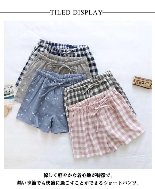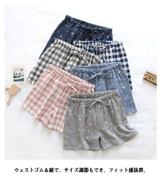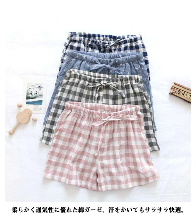 短パン パジャマ 夏用 ガーゼ ルームウェア コットン ガーゼ ダブルガーゼ ショートパンツ ハーフズボン 薄い 涼しい 快適 ポケット付き トランクス レディース 部屋着 女性用 サラサラ