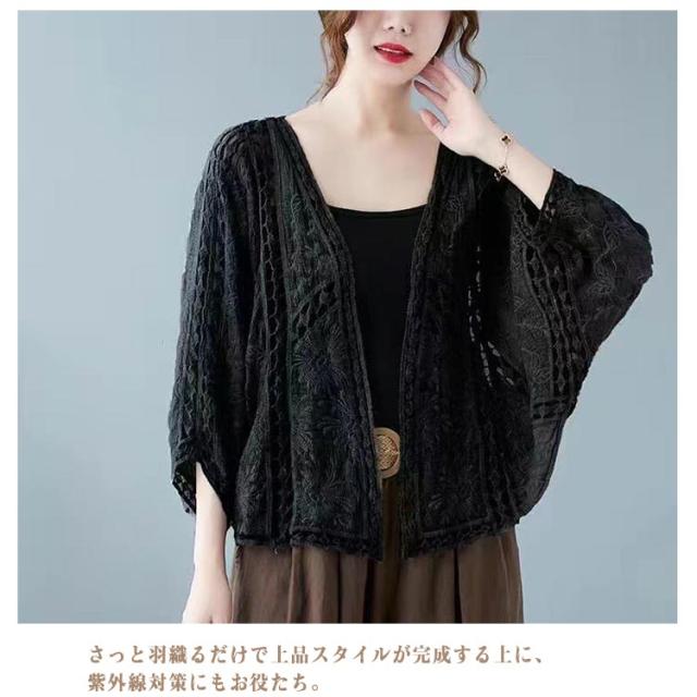 カーディガン サマーカーディガン 透かし編み 体型カバー 透かし編み 可愛い ゆったり フリーサイズ コーデ 長袖 羽織り 薄手 重ね着 上着 総レース ドロップショルダー ドルマン ショート丈 ナチュラル 可愛い サマーカーディガン トップス ボリューム袖