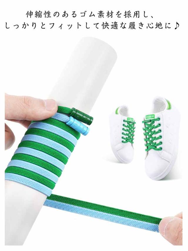 靴紐 結ばない 靴ひも 伸びる ゴム ほどけない 伸縮性 留め具 ストレッチ 平紐 お洒落 シンプル 子供用 大人用 スニーカー 運動靴 脱ぎ履き シューレース 男女兼用 送料無料