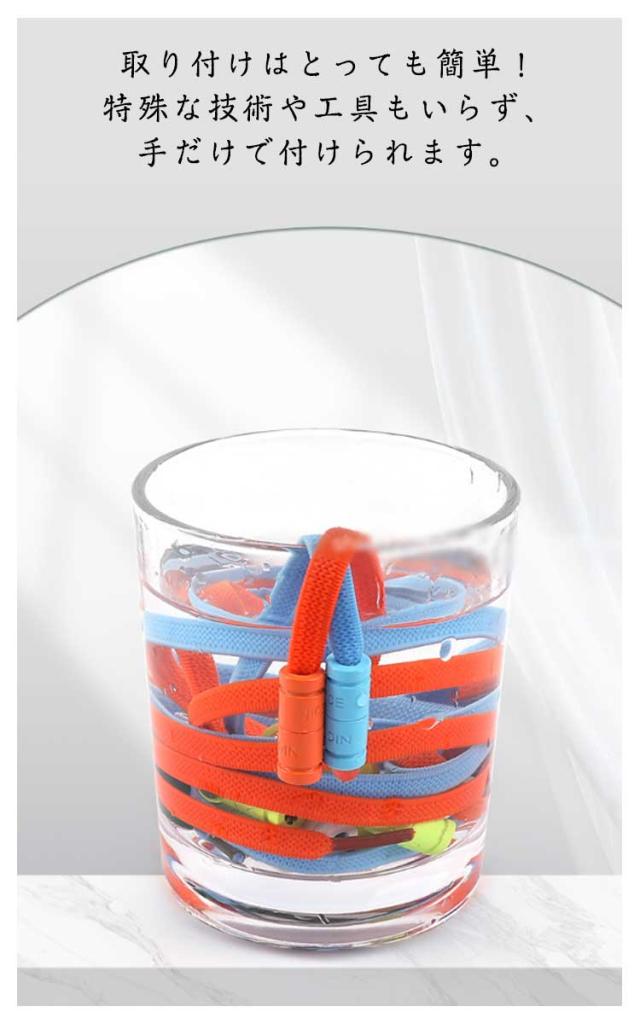 | 足元をおしゃれに演出してくれる結ばない靴紐です! カプセル金具でしっかり固定し、ほどけないので安心です! 伸縮性のあるゴム素材を採用し、しっかりとフィットして快適な履き心地に♪ 取り付けはとっても簡単!特殊な技術や工具もいらず、手だけで付けられます。 普段使いのシューズはもちろん、ウォーキング、ランニング等の運動靴にも快適にご使用いただけます。 | |