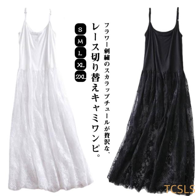 チュールワンピース キャミワンピース ペチコート ワンピース キャミワンピース レディース インナーワンピース レース 刺繍 チュール ロング ワンピース キャミソール ペチワンピース ペチワンピース