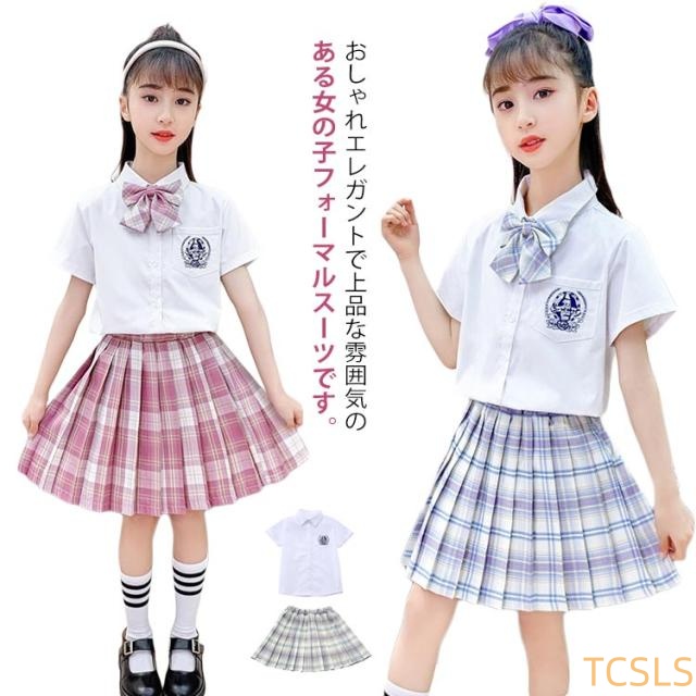 セーラー服 女子高生JK制服 無地シャツ キッズ 子供 フォーマル 上下セット スクール制服 プリーツスカート コスプレ制服 スクール制服 コスチューム 夏服 半袖 ジュニア ブラウス ミニスカート リボン付き 学生服 スクール制服