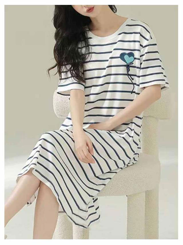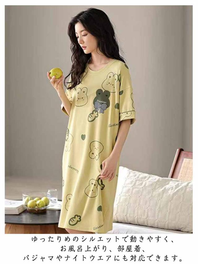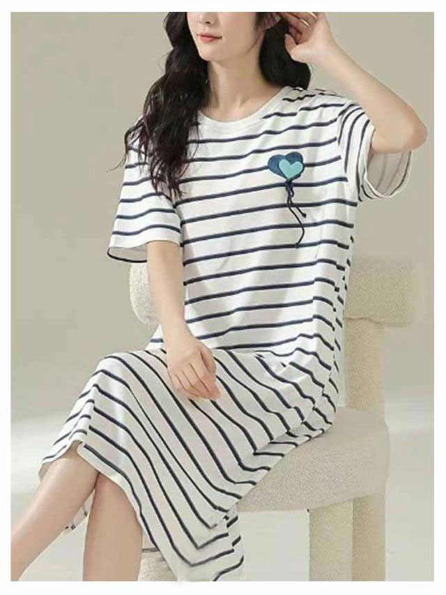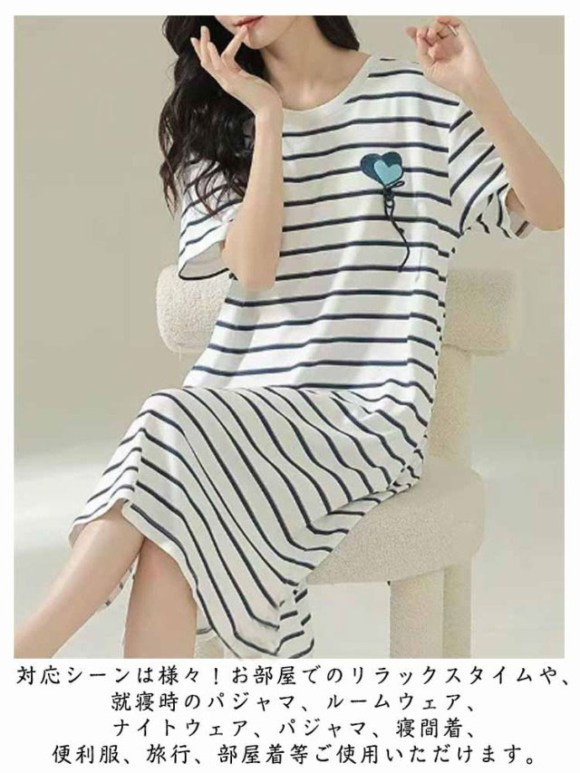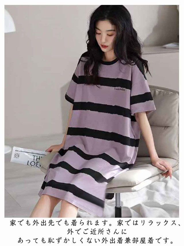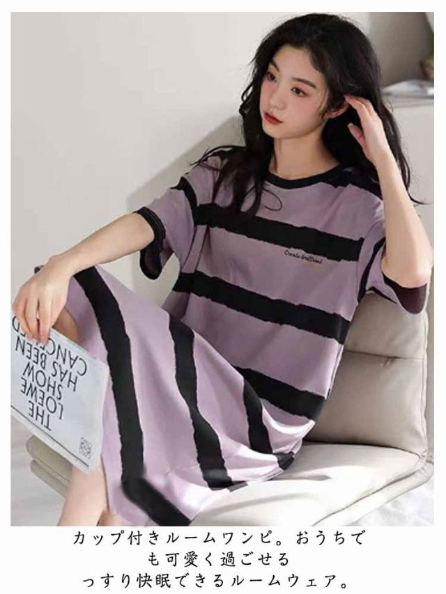 カップ付き ワンピース ルームウェア レディース ロングTシャツワンピース 半袖 パジャマ ブラカップ付き 大きいサイズ 部屋着 おしゃれ かわいい 薄手 春 夏 秋 シンプル カジュアル ボーダー リラックスウェア