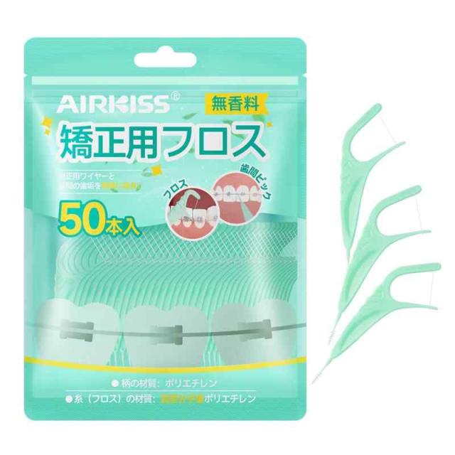 Airkiss(エアーキス)矯正用デンタルフロス 50本入り ワイヤーの際間に入り込む 歯間クリーナー