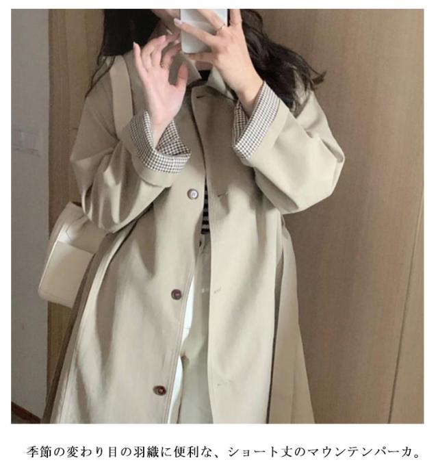 | 春秋に大活躍するレディースコート。 大きすぎずタイトすぎず、程よいユルさにこだわったサイズ感やシルエット。 ちょうど良い厚さのアウターは春秋の時期に大活躍するアイテムです。 サッと腕まくりをしてもストレスなく快適で、こなれ感のあるニュアンスにキマる、こだわりのディテールです。 ミディアム丈のコートでお尻が隠れる位の長すぎない着丈なので、重たく見えない印象で着用できるのがポイントです。 季節の変わり目の羽織に便利な、ショート丈のマウンテンパーカ。 デイリーのちょっとしたお出かけや旅行、お子様と公園で遊ぶときなど、さまざまなシーンで活躍します。 | |