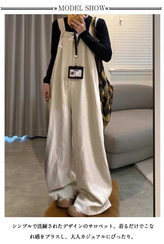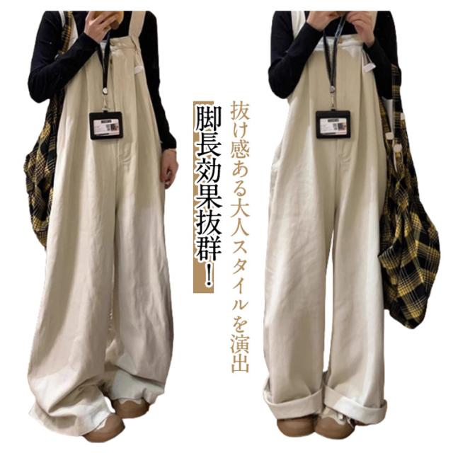 サロペット パンツ オールインワン レディース おしゃれ ワイドパンツ 春秋 フロントタック 体型カバー 抜け感 サロペット 韓国風 ボトム