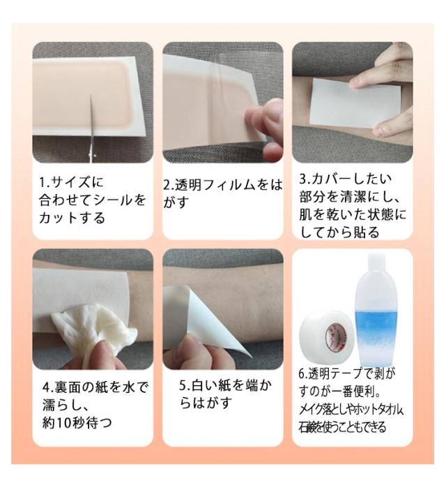 | 12枚 シートを貼るだけ タトゥーや傷あと、あざ隠しに! 汗や水に強いウォータープルーフ仕様 極うす0.02mm(20ミクロン)のシート 1枚で約1週間の継続貼りつけが可能 サイズに合わせてカットもOK | |