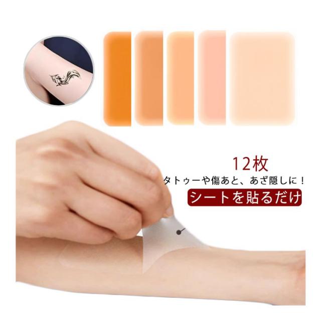 12枚入り しっかり隠す あざ タトゥー隠し ウォータープルーフ 大判 傷あと スキンカバーシート タトゥー隠し 0.02mm ファンデーション テープ シート