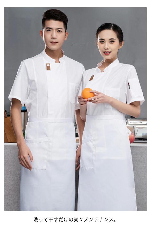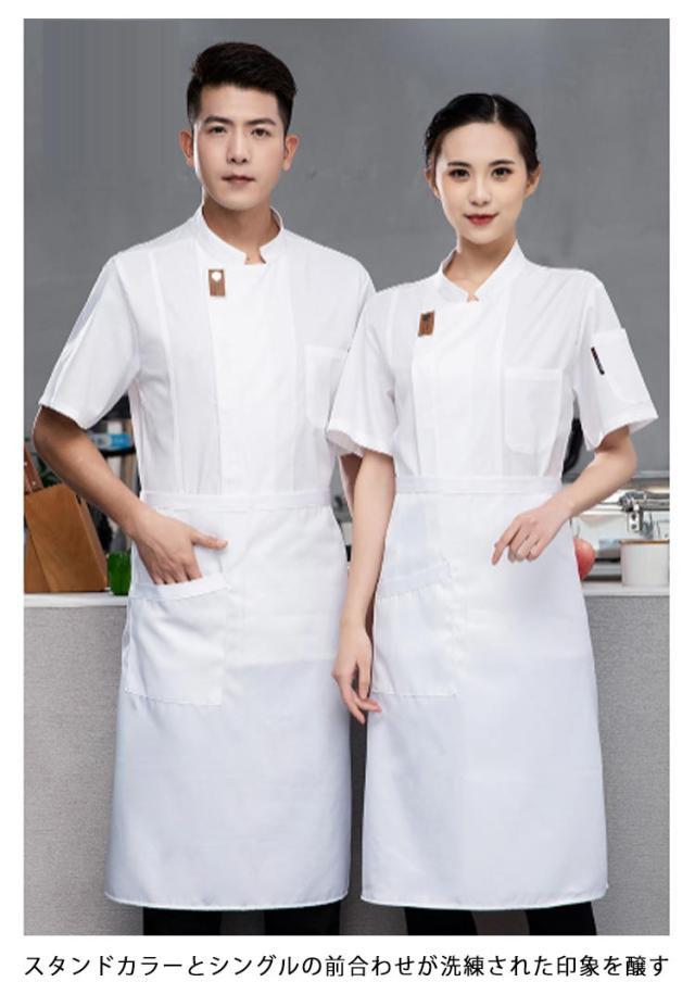 | 男女兼用のコックコート 長袖 半袖 スタンドカラーとシングルの前合わせが洗練された印象を醸す 洗って干すだけの楽々メンテナンス。 毎日洗える!業務用洗濯OK! | |
