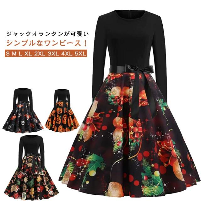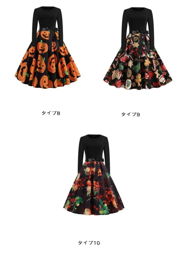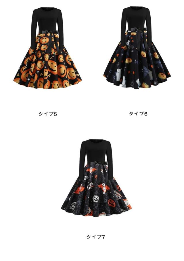 かぼちゃ 長袖 レディース ハロウィン衣装 リボン付き 長袖 イベント 大人用 ハロウィン コスプレ衣装 ワンピース 女性用 ドレス コス用 cosplay コスチューム パーティー 薄手 舞台 演出服 仮面 ハロウィーン 仮装 大きいサイズ