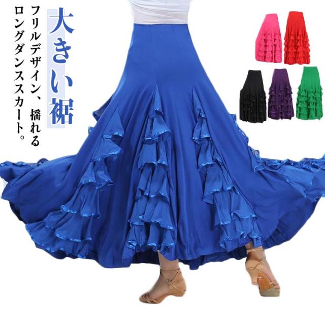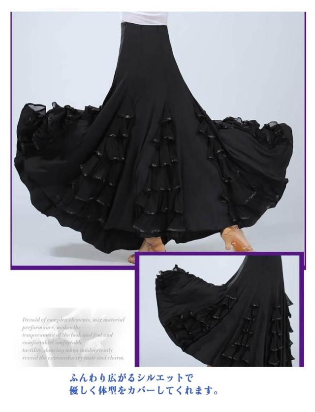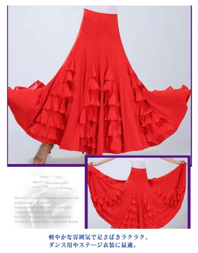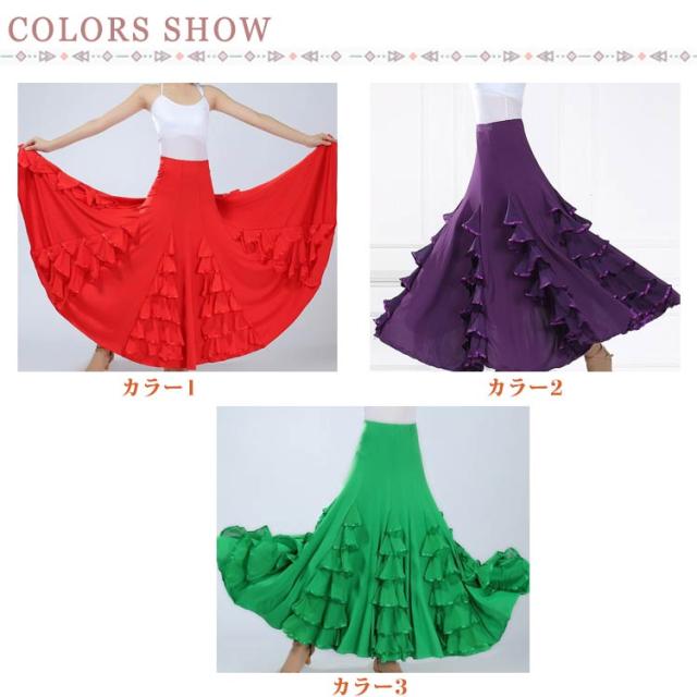フラメンコ 社交ダンス衣装 スカート 広がる 社交ダンス衣装 ラテンダンス サーキュラー ファルダ 社交ダンス フリル ロング スカート ダンス衣装 フラメンコ衣装