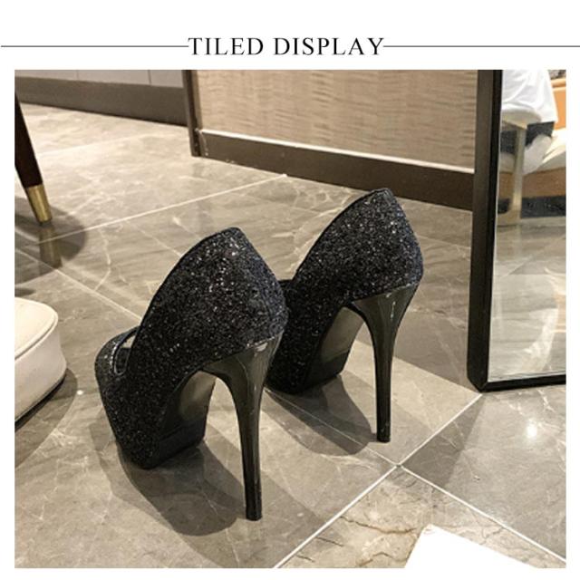 グリッター 痛くない パンプス ラメ 疲れない ハイヒール 脱げない おしゃれ キャバ パンプス 大きいサイズ キラキラ 厚底 太ヒール 歩きやすい パーティー 黒 イベント 靴 シューズ レディース