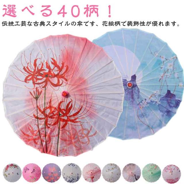 | 選べる40柄!伝統工芸な古典スタイルの傘です、花絵柄で装飾性が優れます。 日本舞踊や歌舞伎、舞台ステージや祭り用のほか、結婚式、盆踊りや夏祭りの小道具・飾り付け、料亭、ホテルや旅館などのオブジェ、呉服店や和雑貨店の売り場のインテリア、力士の名入れ番傘、料亭の名入れ番傘としてもご利用いただけます。 趣のある美しさが印象的な和風デザインの紙傘セットとなっています。 凛とした存在感がありながらも目立ちすぎないので、他の小物と合わせて飾ったりしやすいです。 【適用範囲】コスプレ、仮装パーティーにはもちろん、和服撮影、外出、演劇、花火大会、和風飾り用、宴会の小物としてもご利用いただけます。また、趣のある和傘はお部屋のインテリアとしても存在感を発揮します。 | |