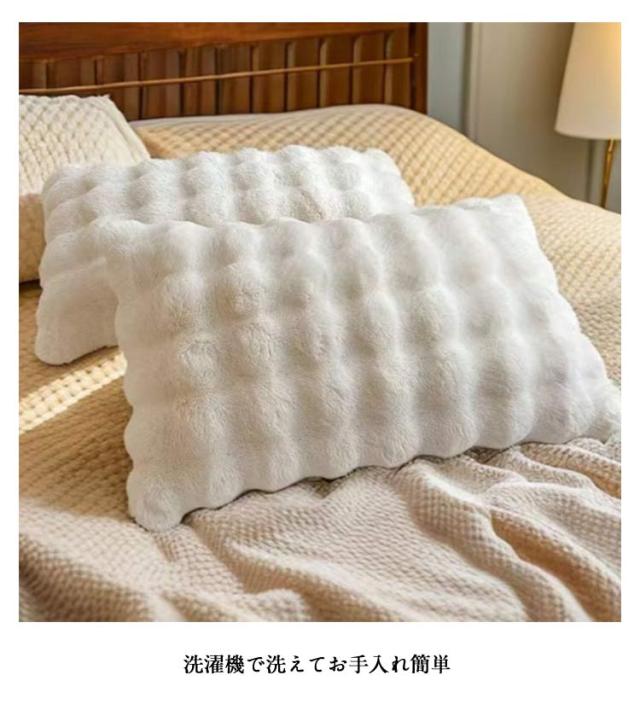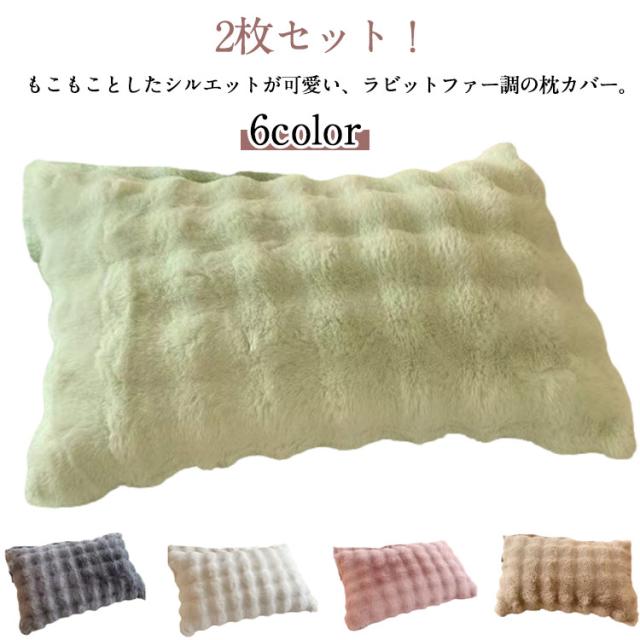もこもこ 2枚セット 枕カバー 枕カバー まくらカバー パイル 毛布 暖かい ピローケース フェイクファー 高級感 かわいい モコモコ 秋冬 柔らかい ラビットファー フランネル 枕ケース 可愛い 北欧風 洗える お手入れ簡単