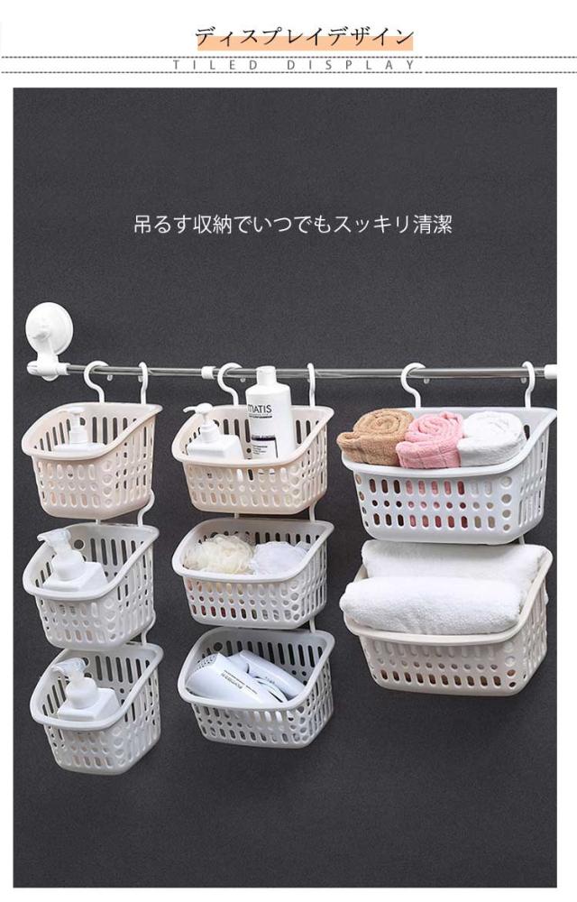 | ・バスグッズをまとめて収納できる ・吊るす収納でいつでもスッキリ清潔 ・通気性の良いメッシュバスケットはいつでも衛生的 ・シンプルなデザインで使いやすいです。 | |
