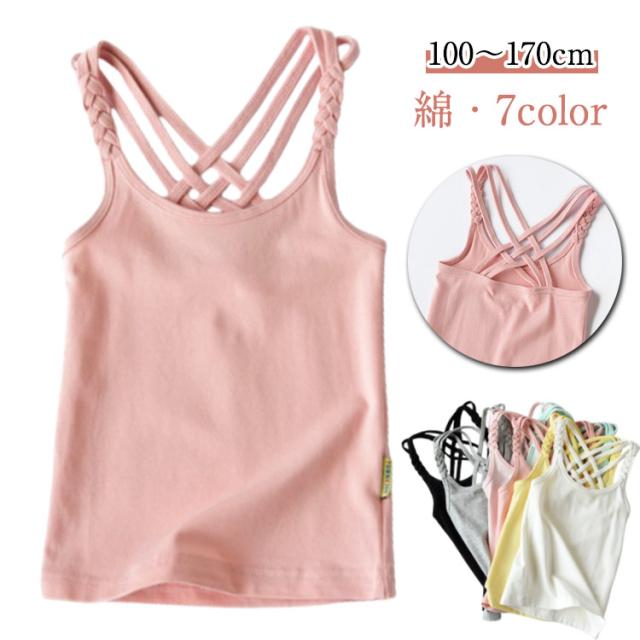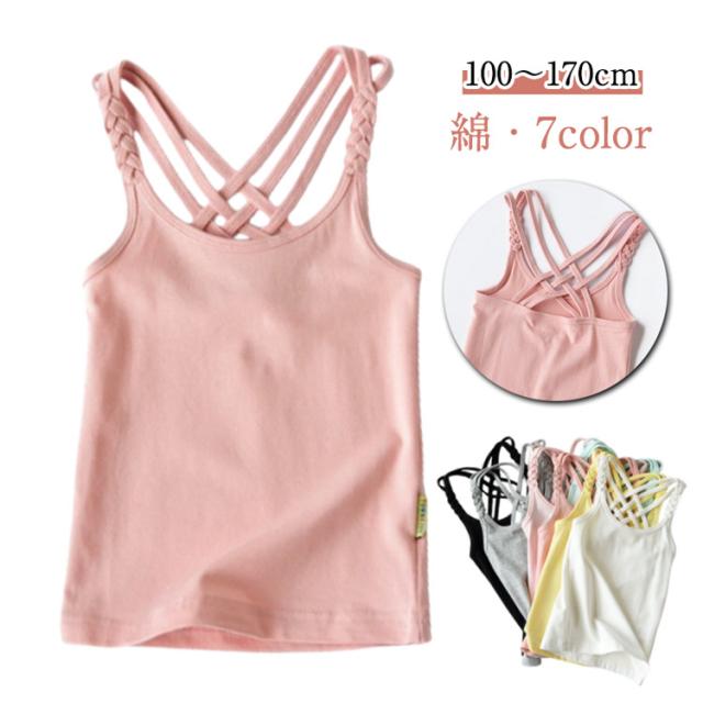 女の子 キッズ 肌着 見せキャミソール キャミソール 100-170cm バッククロス 下着 インナー 無地 シンプル タンクトップ 重ね着 可愛い キッズ ノースリーブ インナー 柔らかい 綿 部屋着 大きいサイズ 子供服 ジュニア
