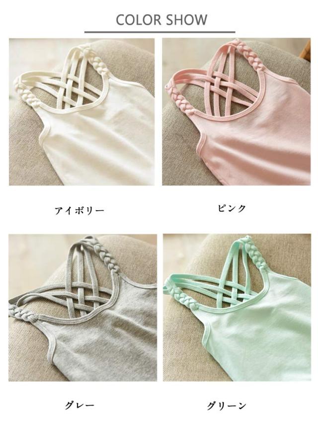 | 【100〜170cm】 【綿・7color】 三つ編みショルダーと背中のバッククロスがかわいいキャミソール 綿素材を採用する、気持ちの良いツルツルとした肌触りを実現しました。 後ろ姿までおしゃれに気を抜かないバッククロスデザイン。 可愛いデザインだけでなく、着心地の良さにもこだわった人気アイテムです。 | |