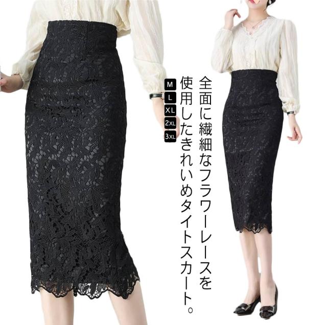 レーススカート 着やせ 無地 膝下丈 ハイウエスト スカート 秋冬 50代 40代 タイトスカート レディース ロング タイト きれいめ タイトスカート 30代 大人 上品 エレガント 花柄 レース ペンシルスカート ストレッチ 春夏 ひざ下丈 ロングスカート オフィス カジュアル 黒