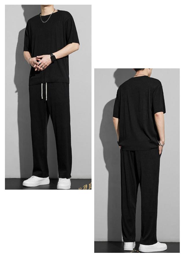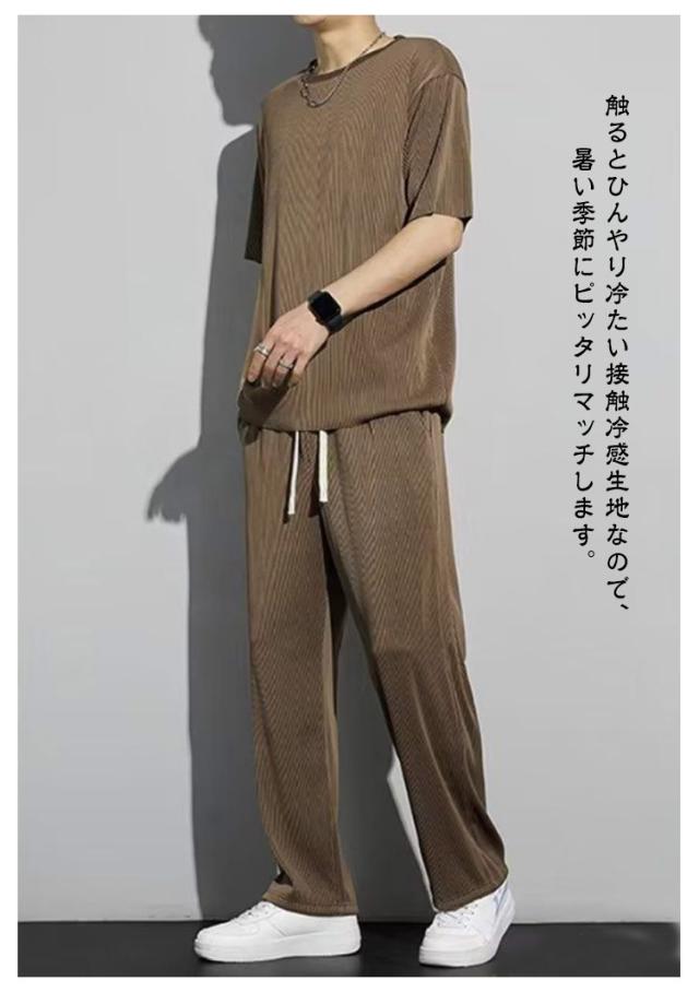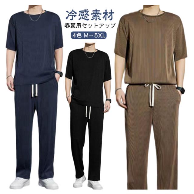 涼しい ジャージ 部屋着 ひんやり 2点セット スウェット ルームウェア メンズ 薄手 Tシャツ 大きいサイズ 上下セット 半袖 ゆったり 無地 ロングパンツ 夏 接触冷感 柔らかい スポーツ 運動着 アウトドア おしゃれ カジュアル セットアップ 春 夏 夏服