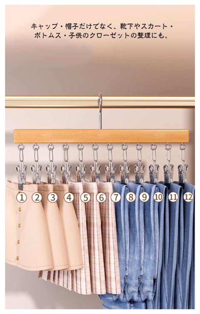 | 【帽子収納ハンガー 12/10ピンチ 2色】 キャップ、帽子を整理できる実用的なハンガーです。 12個のクリップで、省スペースで整理整頓可能です。 キャップ・帽子だけでなく、靴下やスカート・ボトムス・子供のクローゼットの整理にも。 洗濯もの干しにも活躍。 軽量で持ち運びに便利! | |