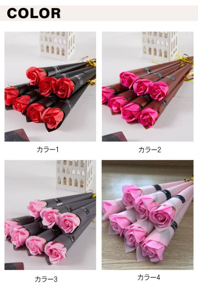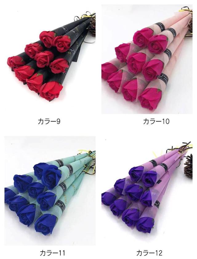 | 【ソープフラワー 個包装 10本セット 全18色選べる】 ソープフラワー一輪バラ10本セット。 ソープフラワーは石鹸で作られているお花、本物のお花と見間違えるほどリアルに作られています。 お手入れ不要でアロマが香る、そして華やかで長持ちと、近年人気上昇中のギフトです。(※)石鹸で出来ていても汚れを落とすことを目的としたものではございません。観賞用としてのご利用になります。 本物の生花そっくりな作りで、部屋などに飾って観賞用として使用します。 花粉がないため、花粉アレルギーの方へのプレゼントにも安心です。 生花のように枯れることがなく、お手入れも不要です。 枯れずにお手入れもいらない為、イベントなどの贈り物や景品におすすめです。 | |