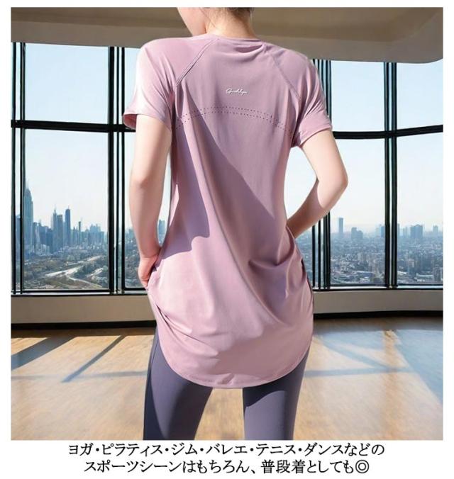 ヨガウェア ヨガtシャツ 半袖 ヨガトップス レディース ヨガ トップス ピラティス ウェア ロング丈 丈長め おしゃれ 体型カバー スポーツウェア 速乾 薄手 丈長め 伸縮性 ゆったり フィットネス ジムウェア ホットヨガ ストレッチ ダンス 送料無料