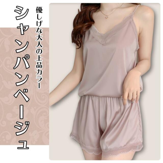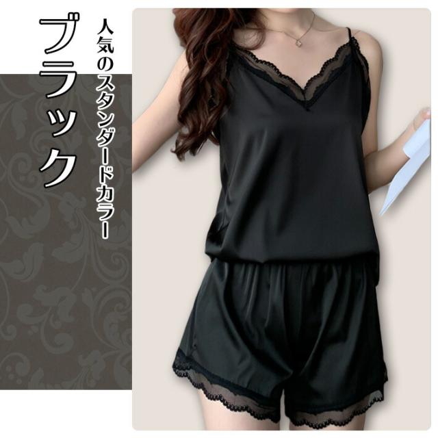 キャミソール パジャマ ランジェリー ショートパンツ ベビードール サテン 上下セット シルクタッチ 光沢 レース ルームウェア インナー 下着 セクシー 大人 可愛い ギフト 春夏 夏 プレゼント