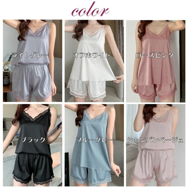 キャミソール パジャマ ランジェリー レディース ナイトウェア ルームウェア パジャマ 続々登場 M L ライトグレー オフホワイト ローズピンク ブラック ブルーグレー シャンパンベージュ